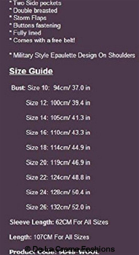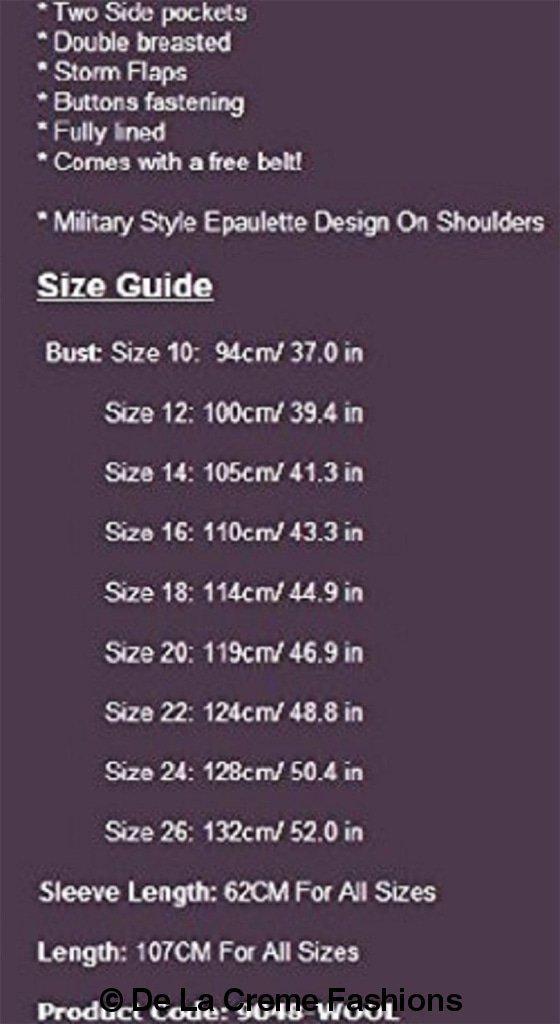 Women's military trench coat featuring Double Breasted Fastening, 2 side pockets and is Hip Length. Military style epaulettes and Rear yolk to finish. Fully lined inside.